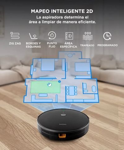 En automatización, este modelo es bastante simple. No tiene base multiuso, así que vas a tener que vaciar el depósito manualmente. Tampoco ofrece todas las funciones avanzadas de las aspiradoras robot de alta gama. Sin embargo, se puede programar y controlar desde la app (y por voz), elegir modos y potencia, y vuelve a la base cuando termina o necesita cargarse.
