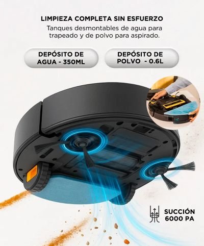 - Puede aspirar + trapear en una pasada.